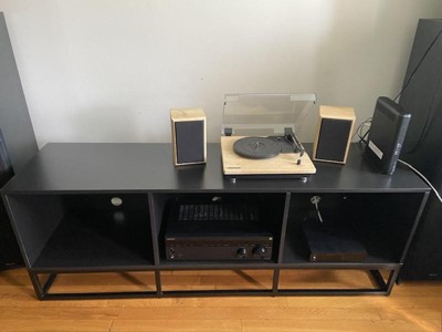 - Each section of the media console has a weight limit of 45lbs and vinyl record storage for up to 95 single albums