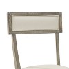 • Dining chairs have backs and seats upholstered in creme linen fabric