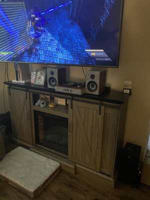 [This review was collected as part of a promotion.] The Aria Shelf System is really neat! You can connect by Bluetooth, aux cord, or use it as a turn table. It was fairly simple to use the Bluetooth to connect my music. The aux cord with the TV was a little tricky because it doesn't automatically connect itself. It is super stylish looking. I LOVE the gray and walnut finish. It sounds really good throughout my house! I'd highly recommend.