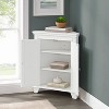 The Lydia Corner Storage Cabinet will be a welcome addition to your home with its space-saving design. Easily nestled in the corner of your bathroom or entryway, this small storage cabinet has two adjustable shelves inside, just right for small items like hand towels and toiletries. The Lydia Cabinet features doors with a classic louvered look, bringing cottage charm wherever it goes.