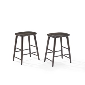 Crosley Maddox 2pc Counter Height Barstool Set Slate: Rubberwood Frame, 24" Seat, Backless Design - 1 of 4