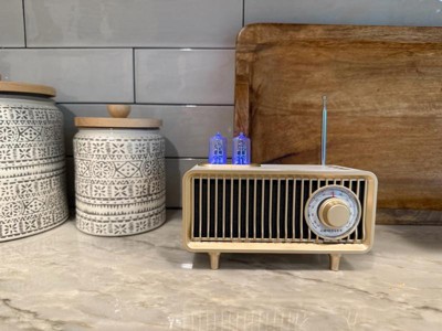 The Milton Radio transports you back in time with its vintage appearance, but there's more to it than good looks. Cycle between FM radio, aux input, USB playback, or Bluetooth. Whatever you choose, the vacuum tube style LEDs change color to indicate your mode. Add this portable radio to your nightstand or countertop for a taste of the past with modern-day function.