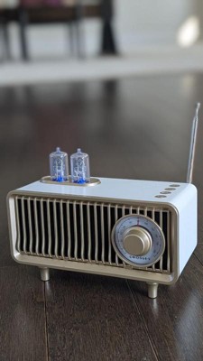 [This review was collected as part of a promotion.] Not only does this radio have impeccable sound, but its classic, vintage look adds so much charm! It’s definitely the perfect size to post up or travel with, and it’s so easy to use. No batteries are required since you can simply charge it up using a USB cord. The tiny vacuum tubes add such an awesome touch, and they actually light up on different settings. It definitely has a strong battery life and doesn’t require much charge. I typically I set it in one area, however, I love how I can take it anywhere without worrying if it’ll stay in one piece. The quality is there! It’s definitely a must have!