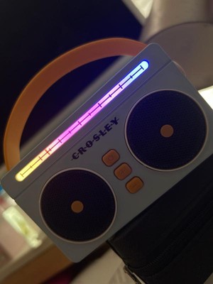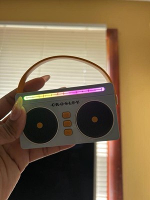 [This review was collected as part of a promotion.] I love my new Crosley Boombox Bluetooth Speaker! It’s small, but has a big sound. It travels very well due to its size and also has a “safety” handle while carrying it. We have been playing it for days and haven’t needed to charge it yet! Also, the colors of the boombox and the lights that shine while it plays make it not just your “average speaker.” The radio vibe reminds me fondly of the 80’s!