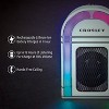 - SOUND AND STYLE: Designed to look like a classic jukebox, this portable speaker features LED lights with five color-changing modes and music sync technology.