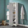 - Can be used as a kitchen pantry, laundry room storage, or bookcase
