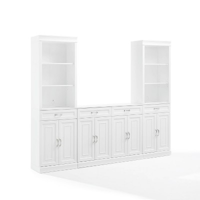 78" Crosley Stanton 3pc Sideboard And Storage Bookcase Set White: Traditional Farmhouse Design, Ample Organizational Space