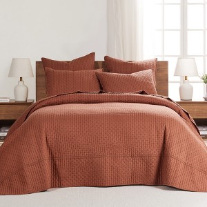 I bought the King Cross Stitch bedspread set in the rust color which looked beautiful online. The first time I washed the set, I noticed some of the thread was pulling out. This just got worse and worse with use. The thread used is a very poor quality. Both the long areas of stitching and the cross stitches are pulling out and the thread is breaking all over the place. I'm very sorry that I bought this set. Buyer beware!