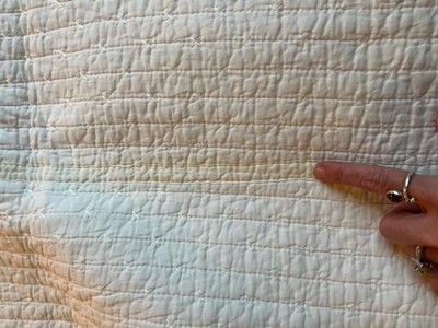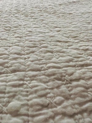 [This review was collected as part of a promotion.] The quilt is very pretty and simple. I have a king size bed with a deep mattress and it easily hangs over each side. It is a thin quilt, so great for layers in the winter or for the warmer months. I did think this was all supposed to be cream but there is a faint yellow border that isn’t ideal as it looks to me a bit more like staining versus purposeful. For that reason I deducted a star. Overall great quilt for clean, summery decor!