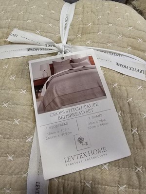 [This review was collected as part of a promotion.] Thank you #influenster and #levtexhome for this stunning complimentary cross stitch taupe bedspread set in exchange for my honest review. The set came beautifully packed and included 1 bedspread and 2 shams. The shams are truly king size and will fit 20in x 36in. The cross stitch looks elegant and the color goes with almost any decor. The bedspread is lightweight and can easily be placed over any bed. It is also machine washable. Couldn’t be happier. Thank you.😊