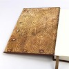 - Faux leather hardcover journal measures 8.25 inches by 5.8 inches.