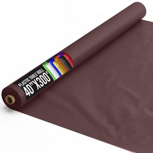 This is a 40 inch by 300 feet Brown plastic table cover roll. It is made of high-quality plastic material that is durable and can endure lots of spills and messes. This large roll of table cover can be used to protect tables at weddings, parties, events, and other gatherings. Its neutral color will match any decor and its plastic material makes clean-up quick and easy. Simply cut the table cover to the desired length and you're ready to go. The 40 inch width is suitable for covering most standard tables, providing ample protection while also creating a seamless look.