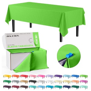 Introducing the Crown Display Select A Size Lime Green Disposable Plastic Tablecloth with Cutter -54" X 100'! This versatile and convenient Lime Green tablecloth roll is the perfect solution for all your hosting needs. Crafted from high-quality plastic, it ensures protection against spills, stains, and scratches while adding a touch of elegance to any event. The generous size of 54" X 100' allows you to effortlessly cover multiple tables or cut to custom-fit any surface. The added bonus of a built-in cutter in the box simplifies the process, providing clean and precise cuts without the need for scissors. Whether you're organizing a birthday party, wedding reception, or corporate gathering, this Lime Green plastic table cover disposable guarantees a hassle-free setup and cleanup. With its durable construction, The Lime Green plastic Tablecloth Disposable can withstand the rigors of various occasions, making it a reliable choice for both indoor and outdoor events. The Crown Display Select A Size Lime Green Disposable Plastic Tablecloth with Cutter -54" X 100' strikes the perfect balance between functionality and aesthetics, offering a practical yet stylish solution for transforming any space into an inviting and presentable environment. Say goodbye to tedious setup times and post-event cleaning, and say hello to convenience and efficiency with this must-have Lime Green disposable tablecloth roll in your party supplies arsenal.