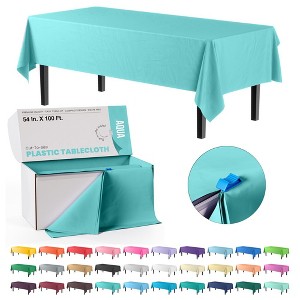 Introducing the Crown Display Select A Size Aqua Disposable Plastic Tablecloth with Cutter -54" X 100'! This versatile and convenient Aqua tablecloth roll is the perfect solution for all your hosting needs. Crafted from high-quality plastic, it ensures protection against spills, stains, and scratches while adding a touch of elegance to any event. The generous size of 54" X 100' allows you to effortlessly cover multiple tables or cut to custom-fit any surface. The added bonus of a built-in cutter in the box simplifies the process, providing clean and precise cuts without the need for scissors. Whether you're organizing a birthday party, wedding reception, or corporate gathering, this Aqua plastic table cover disposable guarantees a hassle-free setup and cleanup. With its durable construction, The Aqua plastic Tablecloth Disposable can withstand the rigors of various occasions, making it a reliable choice for both indoor and outdoor events. The Crown Display Aqua Select A Size Disposable Plastic Tablecloth with Cutter -54" X 100' strikes the perfect balance between functionality and aesthetics, offering a practical yet stylish solution for transforming any space into an inviting and presentable environment. Say goodbye to tedious setup times and post-event cleaning, and say hello to convenience and efficiency with this must-have aqua disposable tablecloth roll in your party supplies arsenal.