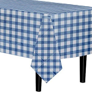 Crown Display Premium Plastic Blue Gingham Tablecloth 54 Inch. x 108 Inch.