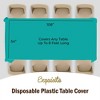 This Premium 54 in. x 108 in. Rectangle Teal Plastic Tablecloth is the perfect choice for any formal or informal event. The Plastic table cover is made of high-quality plastic material that is durable and easy to clean, making it a practical and convenient option for any occasion. The 54 Inch x 108 inch. Rectangle size fits standard Rectangle tables and provides ample coverage for your table. The tablecloth is suitable for both indoor and outdoor events. It can be used for weddings, parties, picnics, banquets and more. The plastic table cover gives a polished and professional look to your table setting while protecting your table from spills and stains.