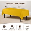 This Premium 54 in. x 108 in. Rectangle Yellow Plastic Tablecloth - 12 pack is the perfect choice for any formal or informal event. The plastic table cover disposable is made of high-quality plastic material that is durable and easy to clean, making it a practical and convenient option for any occasion. The 54-inch x 108 inch Rectangle size fits standard Rectangle tables and provides ample coverage for your table. The Disposable tablecloth is suitable for both indoor and outdoor events. It can be used for weddings, parties, picnics, banquets, and more. The Plastic tablecloth gives a polished and professional look to your table setting while protecting your table from spills and stains.