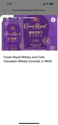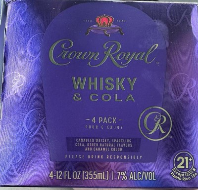 - Includes four 12 fl oz cans of Crown Royal Whisky and Cola Canadian Whisky Cocktail
