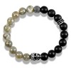 Crucible Men's Skull with Labradorite and Matte Onyx Stone Beads Stretch Bracelet
