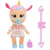 Cry Babies My First Step Dreamy is an adorable interactive baby doll who's ready to take her very first steps! Dressed in a soft, colorful unicorn-themed outfit, Dreamy is perfect for kids who love nurturing and imaginative role play. Hold her little hands and gently guide her forward—as she walks, she makes happy baby sounds to show how excited she is to learn to walk. Dreamy features articulated arms and legs, making her movements more lifelike and fun to play with. Kids can go as slow or as fast as they want. Like any real baby, Dreamy gets emotional too—remove her pacifier and she’ll cry light-up tears in her eyes! Soothe her by giving the pacifier back, which magically lights up in her mouth. Dreamy comes with a unicorn outfit, a light-up pacifier, a feeding bottle, and a cute pair of shoes. With over 10 realistic baby sounds and reactions, Dreamy brings nurturing play to life, helping little ones develop empathy, motor skills, and imagination through interactive fun.
