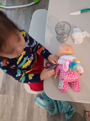 [This review was collected as part of a promotion.] So it’s super cute no doubt! But the crying part is a no go for me. First, the part where you put water is narrow, which makes it hard to actually remove water when you need/ want to. And what happen with water and plastic, mold. Second, to get actual tears you need to squeeze that poor baby’s head so hard. I tested it before giving it to my toddler and I didn’t even show her how to do it, it’s kinda scary! So the doll itself is super cute, but I removed all water, try to dry it as much as possible, and we won’t be using that feature at all.