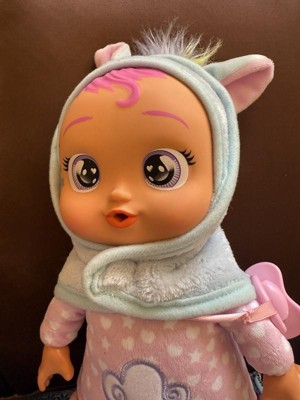 [This review was collected as part of a promotion.] What an absolute adorable baby doll! My 2 1/2 year old daughter loves babies,like her sisters but this baby is so perfect for her little hands and to carry around! She’s not too small that she doesn’t fit into normal baby doll accessories. And her little unicorn hat stays on her head when you put it on w two little Velcro strips,and the Binky are just too freaking cute. The binky you can take in and out of her mouth. We’re now collecting all of the little cry babies newborn dreamy dolls!!! They are quite a few in the collection and at a reasonable price!! They are durable and made well!