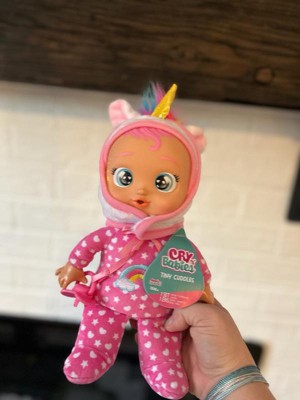 Cry Babies Tiny Cuddles Newborn 10" Lady Baby Doll Pink Hair/Green Eyes: Articulated Plastic Toy