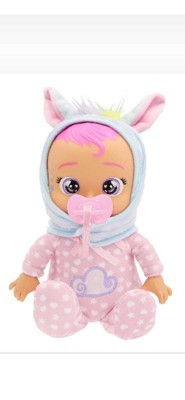 Introducing the cutest Cry Babies Tiny Cuddles Newborns collection. These lovable companions bring joy to little ones with their adorable onesie pajamas and newborn baby look. They also have floppy legs so they can sit up on their own. With 6 different dolls to collect, each wearing a personalized outfit that reflects their favorite animal. Choose your favorite and embark on a world of imaginative play! Meet Lara, the cutest bunny you've ever seen! Dressed in a super cute personalized onesie pajamas and a hooded blanket! There are 6 dolls to collect: Lara the bunny, Daphne the swan, Lady the ladybug, Jenna the peagusus, Dreamy the unicorn and Roxy the puppy! What makes them truly special? Press their head, and watch as real tears stream down. Just like caring for a real baby, these dolls come with a matching pacifier for comforting moments. These dolls offer a blend of softness, entertainment, and nurturing play. Bring home the magic of Cry Babies Tiny Cuddles Newborn and let the fun-filled adventures begin!