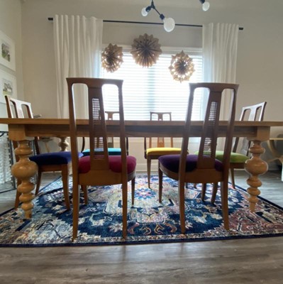 I am absolutely OBSESSED with this rug! The colors are beautiful and they bring so much depth and vibrancy to my dining room. No overly weird smells, and was packed super well. Absolutely love it.