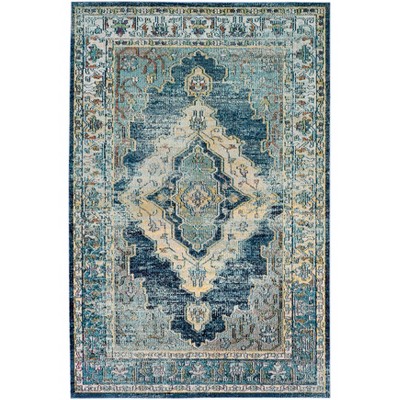 The color palette of this stunning rug features a harmonious blend of orange and light blue, creating a warm and inviting atmosphere in any room. The intricate design pattern, inspired by the image provided, showcases a detailed medallion centerpiece surrounded by ornate borders, embodying the essence of transitional style, a seamless blend of classic motifs with a contemporary twist.