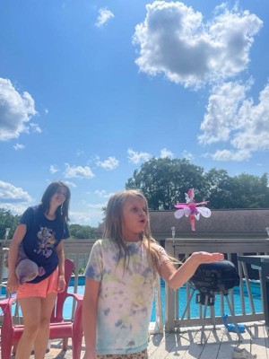 [This review was collected as part of a promotion.] So I love the idea of this toy. It is well made and durable. My daughter loves it. I am not a fan of this toy as I find her dangerous. She Flys fast and high in a short amount of time, making it near impossible to safely keep track of her. Keep away from your hair and face