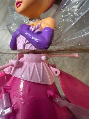 - STUNNING CRYSTAL DETAILS: Her crystal wings, trendy pink dress and metallic accessories make this pretty Crystal Flyers a must-have toy. When she’s not flying, display her on the launch platform