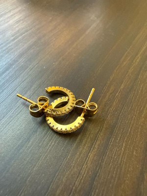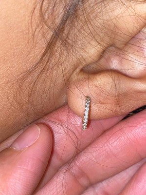 A pair of crystal embedded hoops that perfectly hug your ear. Gorgeous worn solo or mixed alongside your favorite earrings.