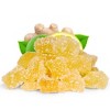 Delicious and fresh candied ginger pieces, Dices, dices and slices. Crystallized ginger chews is made from natural dry ginger root, dried, and rolled in coarse sugar to preserve its sweet, spicy taste. It has a delightful balance of sweetness and spiciness with a pleasantly chewy texture. Save some in the fridge for a nightly snack after dinner. Besides snacking as ginger chews candy, chop and use these in baking, such as gingerbread, cakes, and cookies. Many also use it to help ease an upset stomach, nausea, muscle soreness, digestive problems, and sore throat, to name a few. Our ginger 'candies' are fruity although a bit spicy too, but have no color or flavoring added. Pair it with tea and lemon or simply get munching at home or office, midday or late night snack. These can last a long time, and even longer in the fridge, so stock up in bulk and enjoy!