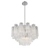 The captivating Addis Lighting Collection is a modern-day interpretation of the iconic mid-century Tronchi chandelier. Inspired by its predecessor's sleek lines and geometric shapes, the Addis features a polished Chrome or Aged Brass metal frame that exudes sophistication and style. Its unique design showcases transparent tiers of textured Tronchi glass tubes, forming a mesmerizing 5-point rounded star shape. Choose from a range of glass colors, including clear, amber, smoke, and white, or the stunning Autumn option, which features a captivating multicolor disposition of amber, clear, and smoke Tronchi glass. The Addis Lighting Collection offers various sizes and finishes, allowing you to find the perfect fit for your space while adding a touch of timeless elegance. Addis collection features a versatile transitional design. / Characterized by clean lines, sculptural forms, and warm metallic or wood accents, often featuring bold shapes and playful pops of color for a retro yet timeless