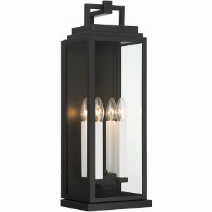 The Aspen Collection features clear glass panels and a sleek black metal frame, blending classic charm with contemporary style. The elongated lantern design showcases a flat geometric arm securely fastened to a rectangular top, creating a striking visual effect. A unique feature of the Aspen Collection is the versatile candle sleeves that ship with both white and gold finishes, allowing you to customize the look to suit your aesthetic preferences. With the Aspen Collection, you can transform your outdoor space into a welcoming oasis of timeless beauty, making a lasting impression on all who visit your home. Aspen collection features a versatile transitional design. / A balanced blend of traditional and contemporary elements, featuring clean lines, neutral finishes, and subtle detailing, offering versatile designs that complement a variety of interiors. / The dark smoky tones of the graphite finish look extraordinary in outdoor settings. / Matte Black finishes are everywhere in contemp
