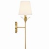 Individual wrought iron leaves deliver a stunning, unique, and functional light. The tailored elegance of the shimmering metallic florals is perfect for a transitional home though versatile enough to be incorporated into any modern design. While ideal for a bedroom, living area, or kitchen, it can be used anywhere you want to add a bit of glam. Broche collection features a versatile transitional design. / A balanced blend of traditional and contemporary elements, featuring clean lines, neutral finishes, and subtle detailing, offering versatile designs that complement a variety of interiors. / Install this wall mount with or without the shade. / Antique Silver metal finish is a mid-tone gray with lavender and blue undertones. This finish will add intensity to the overall look of an interior and perfect for farmhouse and rustic settings. / 6"W x 21"H x 7.25"D / 1 light 60- watt, E12 Candelabra base / Steel + Fabric / Authorized for use in dry interior locations. Meets United States UL U