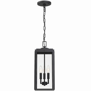 Capturing modern style with clean lines and sharp angles, the Bryon collection will enhance any architecture. Its tapered rectangle clear glass shade allows bright illumination to improve your home's exterior. This sleek design adds timeless appeal to any entry, patio, or terrace. Byron collection features a versatile transitional design. / A balanced blend of traditional and contemporary elements, featuring clean lines, neutral finishes, and subtle detailing, offering versatile designs that complement a variety of interiors. / The dark smoky tones of the graphite finish look extraordinary in outdoor settings. / Matte Black finishes are everywhere in contemporary design. This velvety muted finish makes a modern statement and can create a beautiful contrast while maintaining a super stylish and sleek look. / 7.5"W x 18.75"H x 7.5"D / 3 light 60- watt, E12 Candelabra base / Steel + Glass / Authorized for use in wet interior splash or exterior exposed weather locations. Meets United Stat