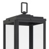 Capturing modern style with clean lines and sharp angles, the Bryon collection will enhance any architecture. Its tapered rectangle clear glass shade allows bright illumination to improve your home's exterior. This sleek design adds timeless appeal to any entry, patio, or terrace. Byron collection features a versatile transitional design. / A balanced blend of traditional and contemporary elements, featuring clean lines, neutral finishes, and subtle detailing, offering versatile designs that complement a variety of interiors. / The dark smoky tones of the graphite finish look extraordinary in outdoor settings. / Matte Black finishes are everywhere in contemporary design. This velvety muted finish makes a modern statement and can create a beautiful contrast while maintaining a super stylish and sleek look. / 7.5"W x 22.25"H x 7.5"D / 3 light 60- watt, E12 Candelabra base / Steel + Glass / Authorized for use in wet interior splash or exterior exposed weather locations. Meets United Stat