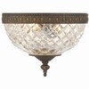 The tailored elegance is perfect for a traditional home though versatile enough to be incorporated into any design. While perfect for a bedroom, living area, or kitchen, it can be used anywhere you want to add a bit of glam. Ceiling Mount collection features a versatile traditional design. / Timeless designs with intricate metalwork, curved arms, crystal embellishments, and classic finishes, bringing a sense of warmth and heritage to any space. / The clean precise cut of the crystal bowls, give this traditional style an updated look. / Olde Brass metal finish, perfect for traditional settings. / 8"W x 8"H x 8"D / 2 light 40- watt, E12 Candelabra base / Steel + Glass / Authorized for use in damp, high-humidity interior locations or protected exterior locations. Meets United States UL Underwriters Laboratories Product Safety Standards / Inspired by our 60 year heritage, our Ceiling Mount collection features classical styles that are a piece of our family's history. / Assembly Required:
