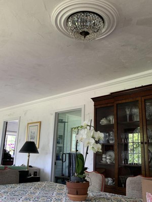 The light beautifully pairs a solid circular brass frame with a cut crystal bowl. Finished in polished chrome, the stunning combination of brass and crystal are the perfect accent to any traditional room in your home. Ceiling Mount collection features a versatile traditional design. / Timeless designs with intricate metalwork, curved arms, crystal embellishments, and classic finishes, bringing a sense of warmth and heritage to any space. / The graduated crystal prisms give this traditional style an updated look. / Olde Brass metal finish, perfect for traditional settings. / 14"W x 7"H x 14"D / 3 light 60- watt, E12 Candelabra base / Brass / Authorized for use in damp, high-humidity interior locations or protected exterior locations. Meets United States UL Underwriters Laboratories Product Safety Standards / Inspired by our 60 year heritage, our Ceiling Mount collection features classical styles that are a piece of our family's history. / Assembly Required: Yes / Canopy Included: Yes /