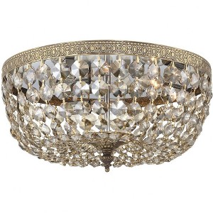 The light beautifully pairs a solid circular brass frame with a cut crystal bowl. Finished in polished chrome, the stunning combination of brass and crystal are the perfect accent to any traditional room in your home. Ceiling Mount collection features a versatile traditional design. / Timeless designs with intricate metalwork, curved arms, crystal embellishments, and classic finishes, bringing a sense of warmth and heritage to any space. / The graduated crystal prisms give this traditional style an updated look. / Olde Brass metal finish, perfect for traditional settings. / 14"W x 7"H x 14"D / 3 light 60- watt, E12 Candelabra base / Brass / Authorized for use in damp, high-humidity interior locations or protected exterior locations. Meets United States UL Underwriters Laboratories Product Safety Standards / Inspired by our 60 year heritage, our Ceiling Mount collection features classical styles that are a piece of our family's history. / Assembly Required: Yes / Canopy Included: Yes /