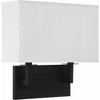 The Durham two-light wall mount features a rectangular base and crisp white silk shade. Perfect for a hallway, living room, and bedroom, this transitional accent is sleek and timeless, and easily added to any d�cor or space. Durham collection features a versatile modern / contemporary design. / A balanced blend of traditional and contemporary elements, featuring clean lines, neutral finishes, and subtle detailing, offering versatile designs that complement a variety of interiors. / White silk shade included. / The Vibrant Gold metal finish has a softer gold color. This finish adds sophistication to any space and pairs elegantly with traditional, transitional, and contemporary d�cor. / 12.75"W x 12.25"H x 3.75"D / 2 light 60- watt, E12 Candelabra base / Steel + Fabric / Authorized for use in damp, high-humidity interior locations or protected exterior locations. Meets United States UL Underwriters Laboratories Product Safety Standards / The clean lines of this ADA Durham wall sconce lo