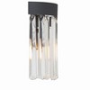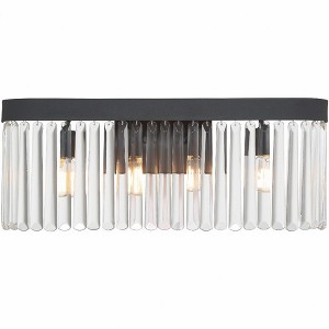 Art deco design is exemplified in this Emory collection bathroom vanity. The collection features a row of smooth glass prisms hanging from a steel frame. Both the Black Forged and Modern Gold finishes, add all the sparkle and glamour you need in a fixture. Emory collection features a versatile transitional design. / Characterized by clean lines, sculptural forms, and warm metallic or wood accents, often featuring bold shapes and playful pops of color for a retro yet timeless appeal. / The elongated glass prisms provide a modern look. / Modern Gold has a soft muted gold-plated finish. The overall appearance has even coloring throughout and works beautifully in modern and transitional settings. / 24"W x 9.5"H x 3.75"D / 4 light 60- watt, E12 Candelabra base / Steel + Glass / Authorized for use in damp, high-humidity interior locations or protected exterior locations. Meets United States UL Underwriters Laboratories Product Safety Standards / Art deco meets glam with this retro inspired