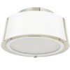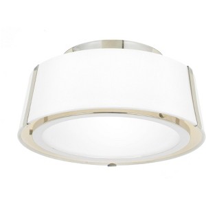 The Fulton has a timeless style that adds uncomplicated beauty to any space. The double white silk shade, with the inside shade trimmed with a sleek metal ring holding the glass diffuser, gives the light a clean, tailored, versatile appeal. Fulton collection features a versatile modern / contemporary design. / A relaxed blend of rustic charm and modern comfort, featuring natural textures, neutral tones, and vintage-inspired accents. / Features a metal ring and glass diffuser. / Polished Nickel metal finish, perfect for modern & contemporary settings. / 12"W x 6"H x 12"D / 2 light 60- watt, E26 Medium base / Steel + Fabric / Authorized for use in dry interior locations. Meets United States UL Underwriters Laboratories Product Safety Standards. / The Fulton shade creates a warm light output. / Assembly Required: Yes / Canopy Included: Yes / Canopy Diameter: 7 / Shade Included: Yes / Shade Dimensions: 12 x 4.25. ,
