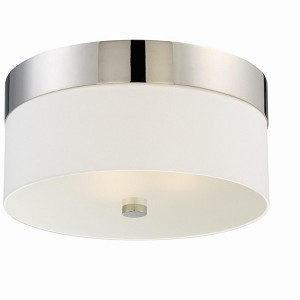 Libby Langdon has given the classic ceiling light a modern update with a ribbon of steel that lends the Grayson Collection a fashionable mid-century appeal. Versatile enough to fit into any interior, this fixture produces a soft diffused light that adds warmth to any space. A great look for any decor, this light looks great in the dining room, kitchen, bedroom, or grand living room. Grayson collection features a versatile modern / contemporary design. / A balanced blend of traditional and contemporary elements, featuring clean lines, neutral finishes, and subtle detailing, offering versatile designs that complement a variety of interiors. / The white silk shade mixed with the chunky metal banding offers a great design flare. / Polished Nickel metal finish, perfect for modern & contemporary settings. / 16"W x 8"H x 16"D / 3 light 60- watt, E26 Medium base / Steel / Authorized for use in dry interior locations. Meets United States UL Underwriters Laboratories Product Safety Standards. /