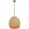 If cozy, paired-back, and relaxed style defines your home interior choices, the textural Jace pendant light is what you have been looking for. The natural warmth of organic Jute has a light and airy feeling that adds architectural interest to any space. The downward-facing rod is accented with wrapped Jute with a gold finish, creating a beautiful tone-on-tone look. This versatile collection seamlessly blends in modern, coastal, and even traditional styles. Jace collection features a versatile farmhouse / industrial design. / A breezy, light-filled style that blends soft hues, natural materials, and nautical touches for a relaxed, seaside-inspired feel. / Two-layered design, featuring natural organic hand-wrapped Jute. / Soft Gold metal tones showcase a light and airy feel that work well with transitional settings. / 15"W x 17"H x 15"D / 1 light 60- watt, E26 Medium base / Steel + Jute / Authorized for use in damp, high-humidity interior locations or protected exterior locations. Meets