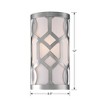 A striking geometric statement, the Jennings collection pairs Libby Langdon's signature classic design with a modern flair. The Jennings is an open, graphic metal design with a white silk shade. A perfect marriage of classic and modern creating the ideal elegance. Jennings collection features a versatile design. / A balanced blend of traditional and contemporary elements, featuring clean lines, neutral finishes, and subtle detailing, offering versatile designs that complement a variety of interiors. / The Jennings drum shade features Libby Langdon's signature pattern. / Polished Nickel metal finish, perfect for modern & contemporary settings. / 6.5"W x 12"H x 4"D / 1 light 60- watt, E26 Medium base / Steel / Authorized for use in damp, high-humidity interior locations or protected exterior locations. Meets United States UL Underwriters Laboratories Product Safety Standards / This drum shaded series is perfect for residential or hospitality settings. / Assembly Required: Yes / Back Pla