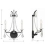 Create an ambiance that is indulgent and beautiful with the breathtaking Karrington collection. Its downward-facing sweeping arms feature cascading beads and crystal teardrops dripping from its elegant frames. Whether adorning an entry or dining room, this stunning collection captures the eye and adds instant drama. Karrington collection features a versatile traditional crystal design. / Timeless designs with intricate metalwork, curved arms, crystal embellishments, and classic finishes, bringing a sense of warmth and heritage to any space. / Downward facing cascading beads and crystal teardrops. / Matte Black finishes are everywhere in contemporary design. This velvety muted finish makes a modern statement and can create a beautiful contrast while maintaining a super stylish and sleek look. / 12.5"W x 18.5"H x 6.75"D / 2 light 60- watt, E12 Candelabra base / Iron + Glass / Authorized for use in dry interior locations. Meets United States UL Underwriters Laboratories Product Safety St