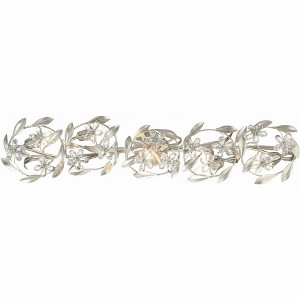 The Marselle Collection is adorned with hand-cut crystal jewels and wrought iron leaves designed in a playful arrangement. The detail of leaves and intricate floral designs lend a sense of organic artistry to each piece, creating a mesmerizing display of nature's splendor. Available in three sophisticated finishes�white, gold and silver, this collection offers a touch of opulence for every decor. The crystal jewels are cleverly connected to form delicate flowers, adding a touch of whimsy and charm to your space. Even the canopy features a leafy design, completing the harmonious blend of nature and art. Marselle collection features a versatile transitional design. / A breezy, light-filled style that blends soft hues, natural materials, and nautical touches for a relaxed, seaside-inspired feel. / Wrought iron hand painted leaves playfully arranged and accented with crystals. / Antique Silver metal finish is a mid-tone gray with lavender and blue undertones. This finish will add intensit